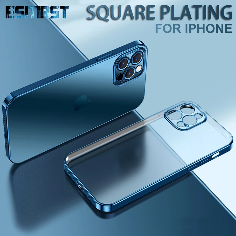 Роскошный квадратный Прозрачный чехол с покрытием для iPhone 11 12 Pro Max Mini X XR XS 6 6S 7 8 Plus SE 2020, прозрачные силиконовые чехлы