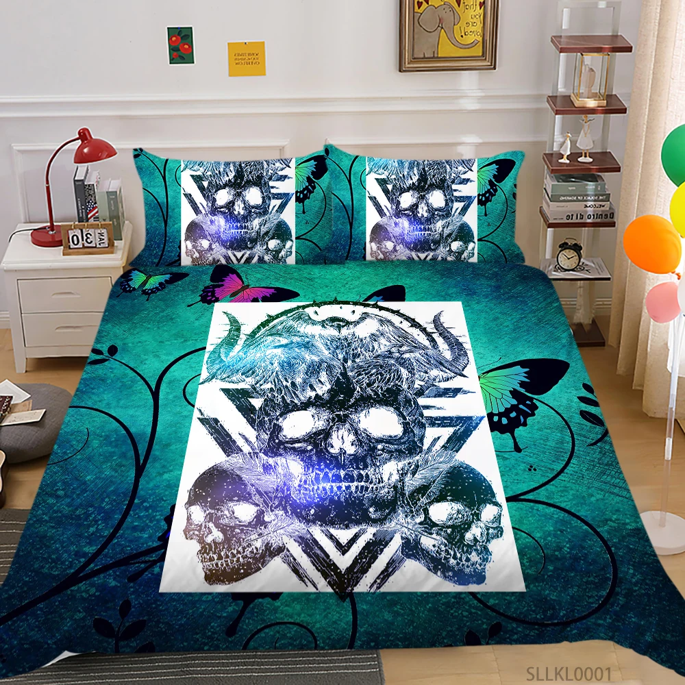 Fanaijia king набор пододеяльников с наволочкой, богемный принт с черепом, Комплект постельного белья из 3 предметов, Королевский размер, кровать AU Queen, лучший подарок, постельное белье
