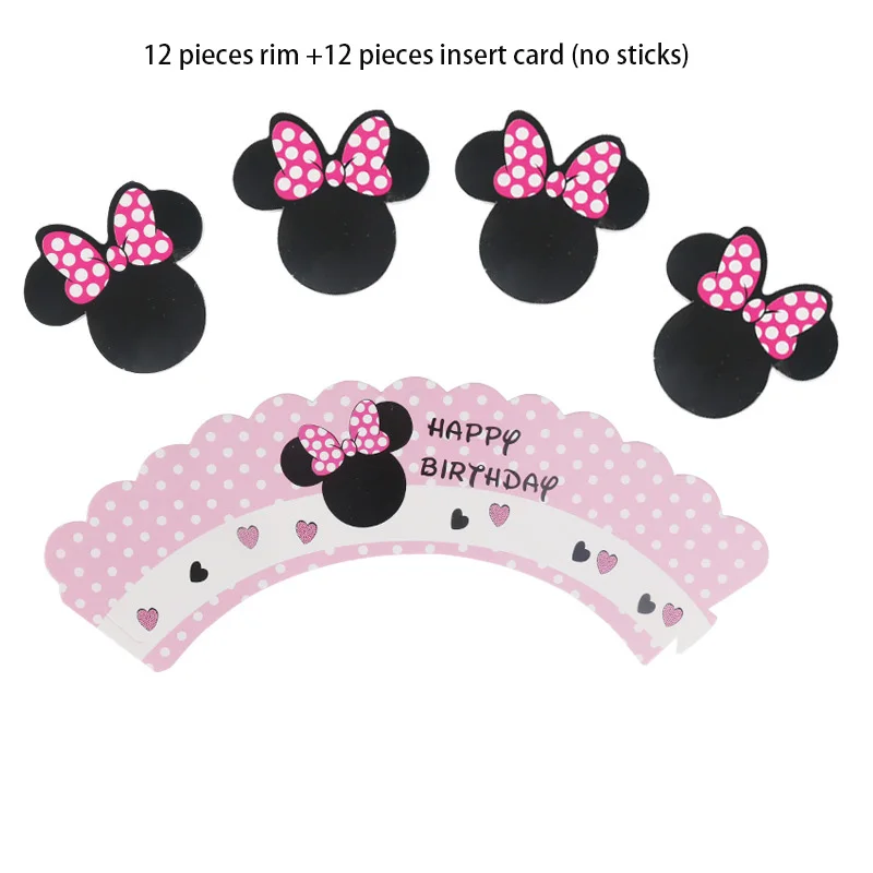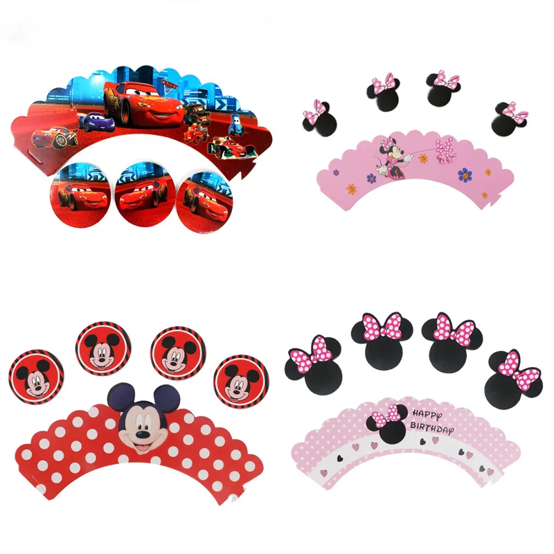 Микки торт вечерние 12 шт. обертки + 12 шт. топперы Минни Маус цветная бумага кекс торт дети день рождения партии украшения поставки