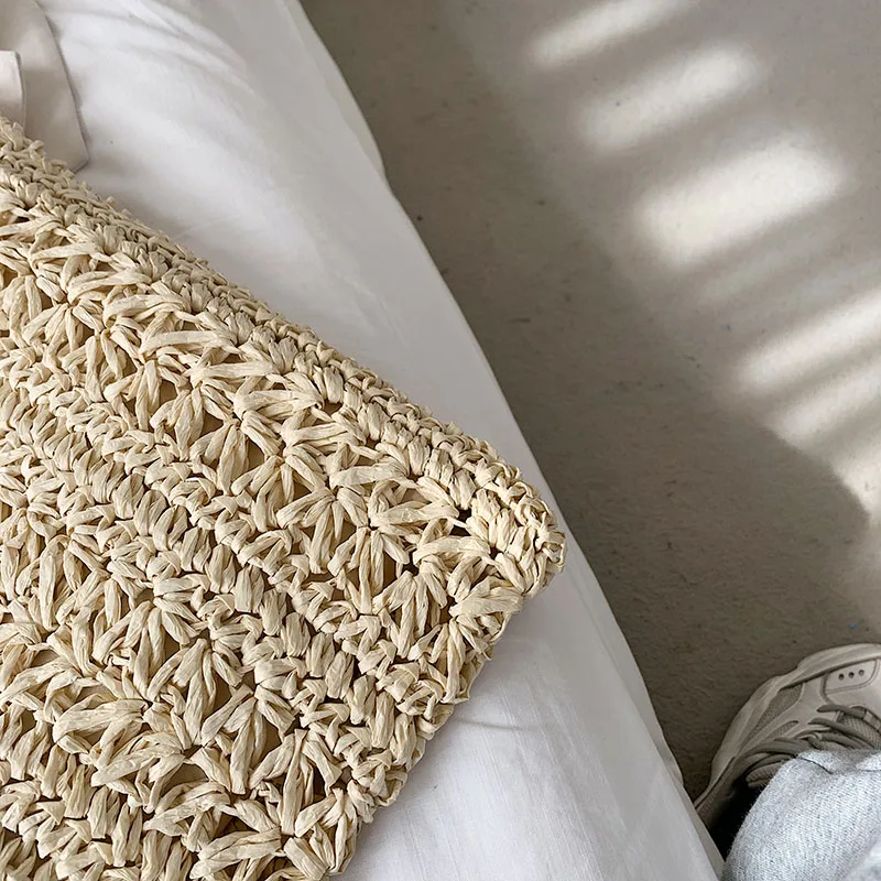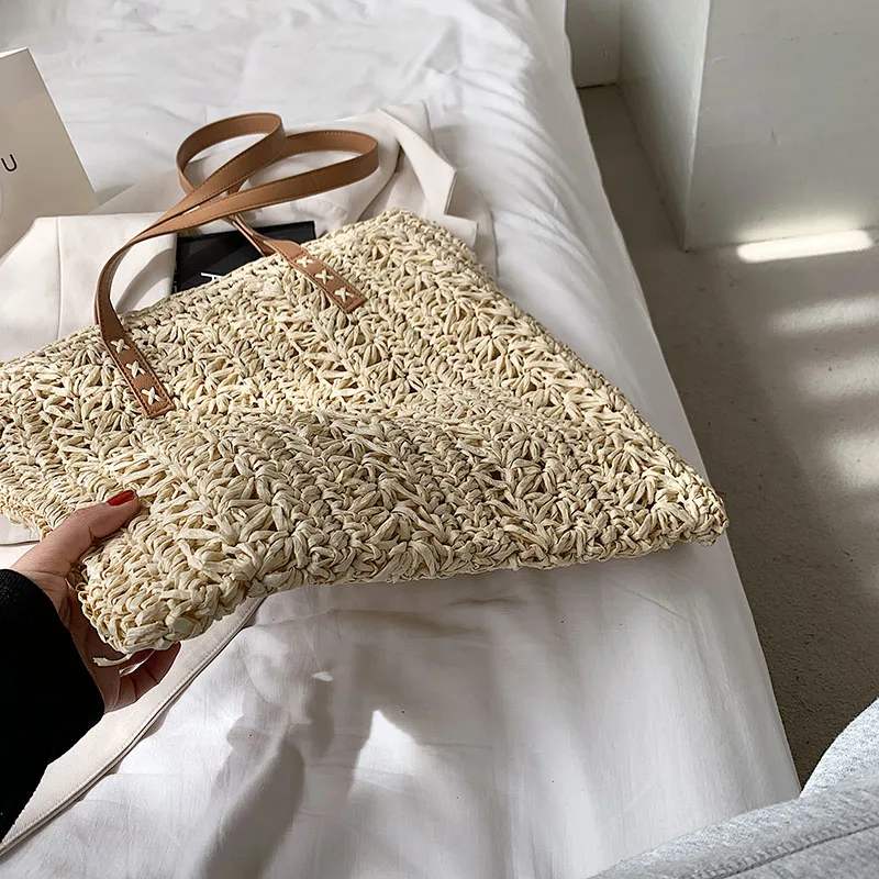 Женская Соломенная Сумка, летняя Большая вместительная сумка на пле...