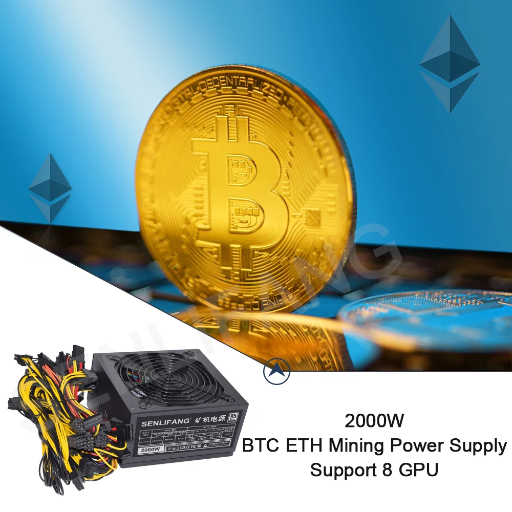 SENLIFANG 2 шт. 2000 Вт блок питания для майнинга биткоинов, ПК блок питания для майнинга, 8 GPU ATX эфириум монета 12 В