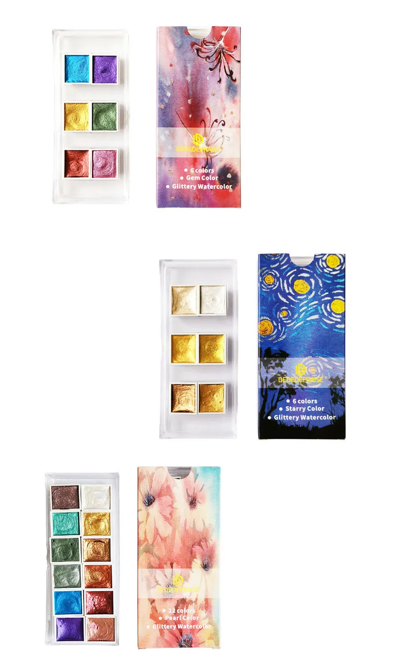 Набор акварельных красок 6 цветов, текстурированный перламутровый п...