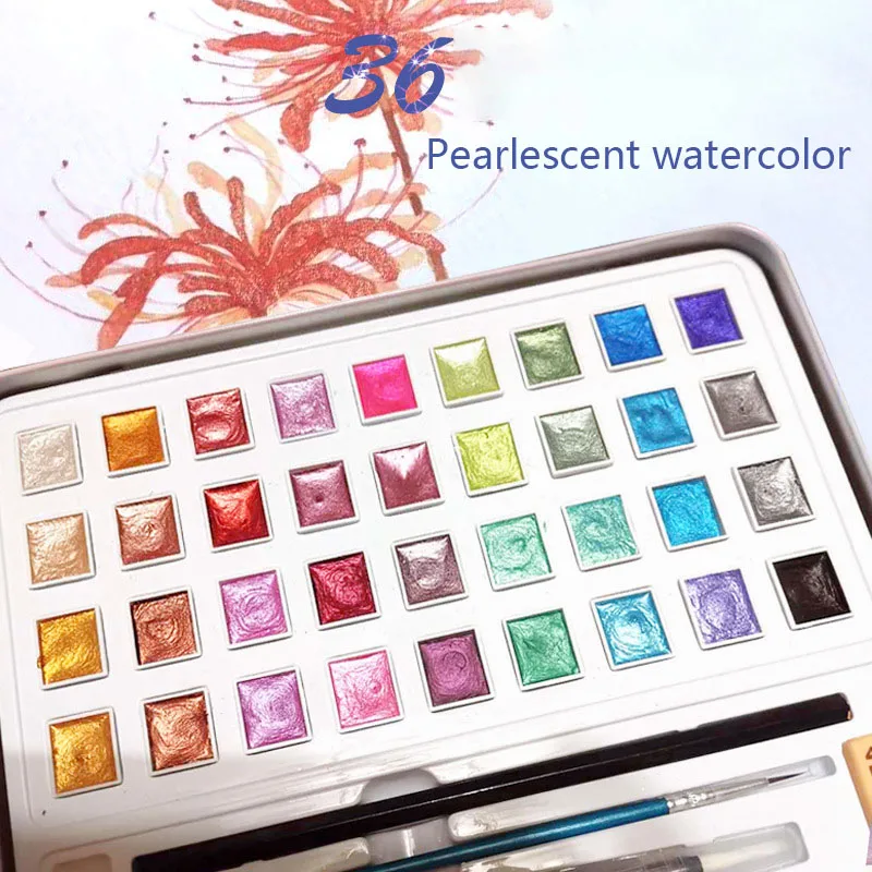 Набор профессиональных акварельных красок 61236, перламутровый пигмент металлик для рисования, художественные принадлежности