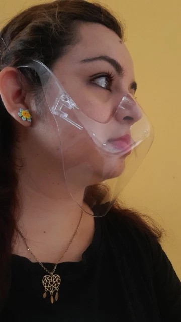 сделано качественно. люди в общественных местах с непривычки странно реагируют - кто-то пугается, кто-то улыбается))) девушка на фото товара имеет, судя по всему, достаточно крупное лицо, но притом не слишком широкое. на мне маска сидит куда свободнее - щёки с ней не соприкасаются, например. но при этом расстояние между дужками мне впритык - ещё немного, и они будут давить. ВЫВОД: идея крутая, сделано хорошо, товар я рекомендую тем, у кого не слишком широкое лицо, но было бы здорово иметь возможность выбрать свой размер.