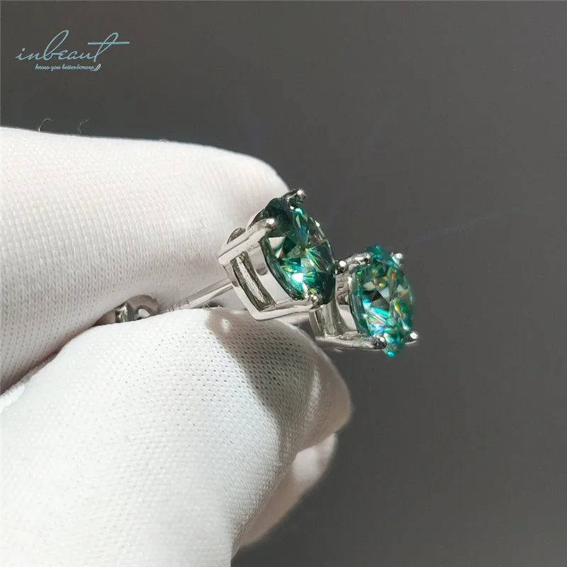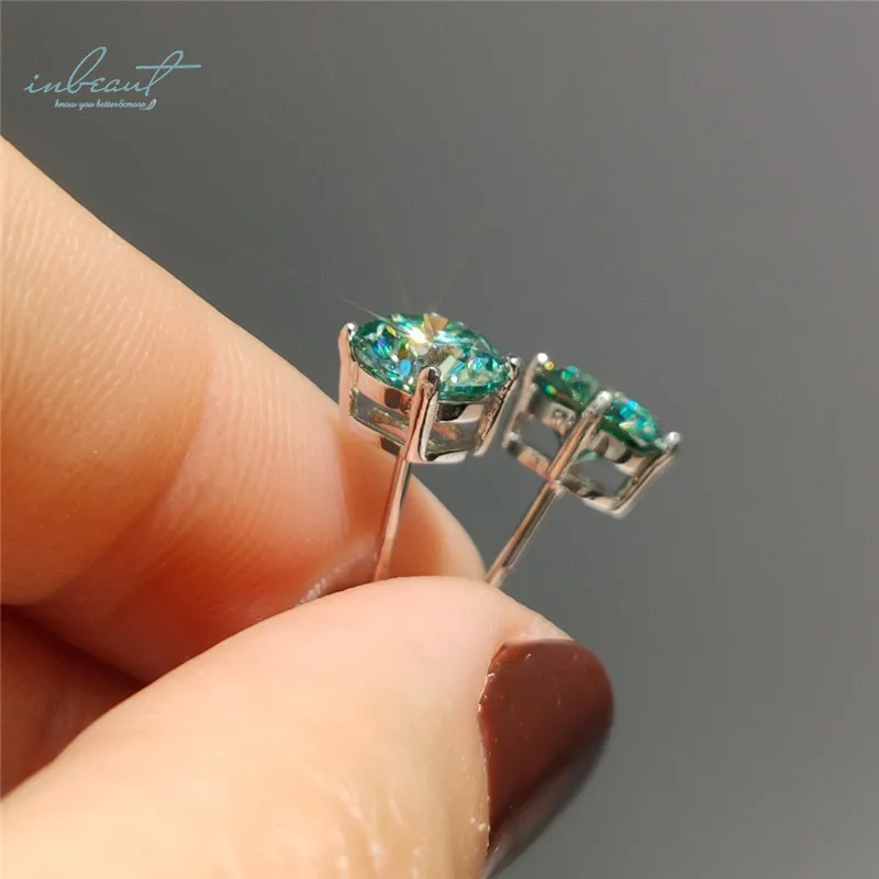Inbeaut Классический 4 коготь 925 Silver Pass Diamond тесты круглый отличный крой зеленый и синий серьги-гвоздики с муассанитом серьги девушки ювелирные изделия