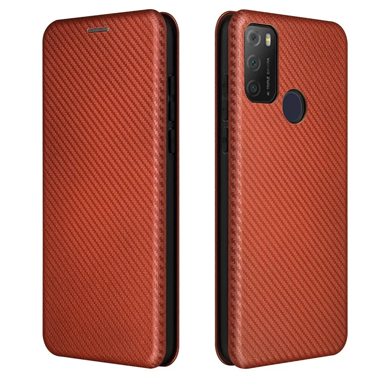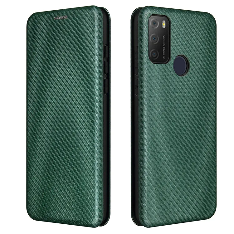 Чехол-книжка для Alcatel 1S 2021, из углеродного волокна, кожаный, с отделением для карт, тонкий Чехол-книжка для Alcatel 3L 2021