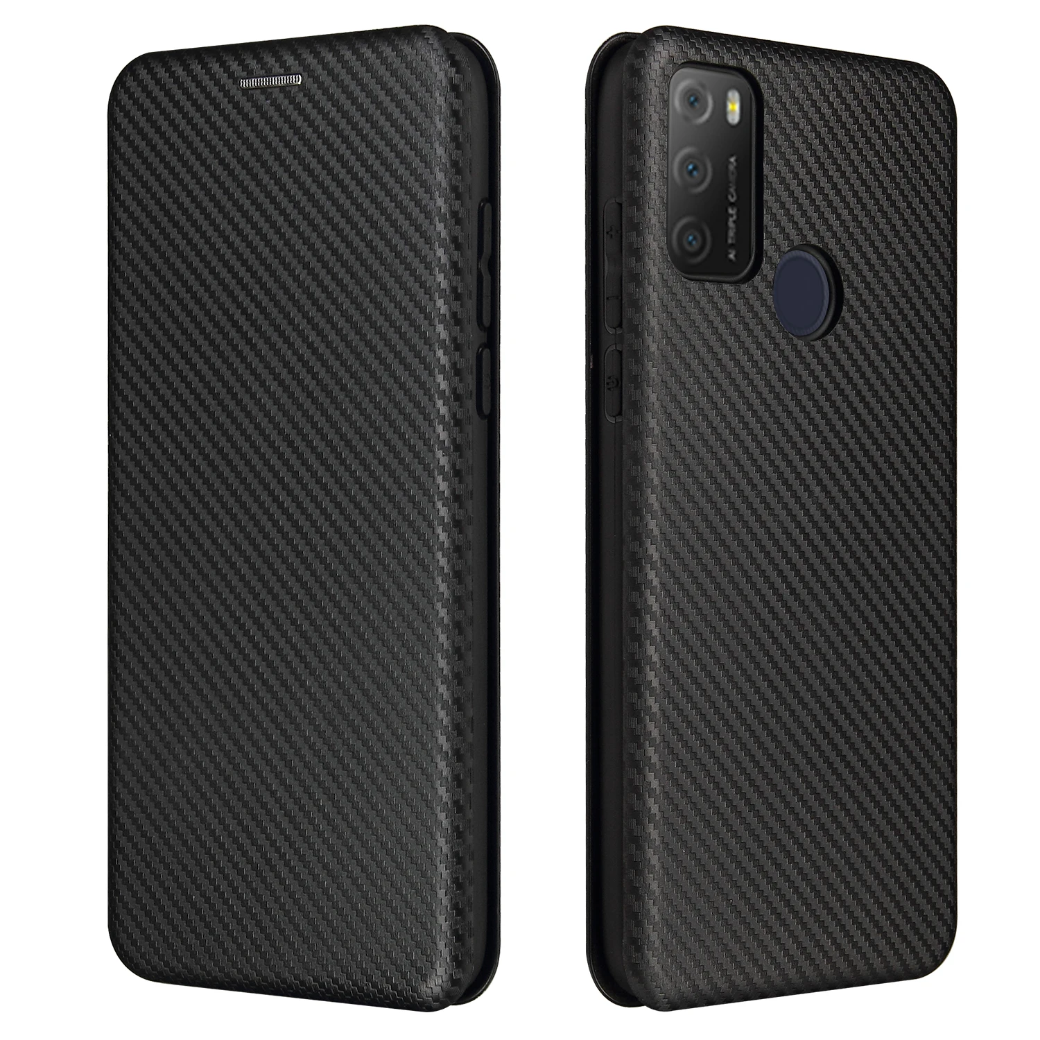Для Alcatel 1S 2021 чехол из углеродного волокна Флип кожаный чехол для Alcatel 3L 2021 бизнес Магнитный кошелек слот для карт тонкий Чехол