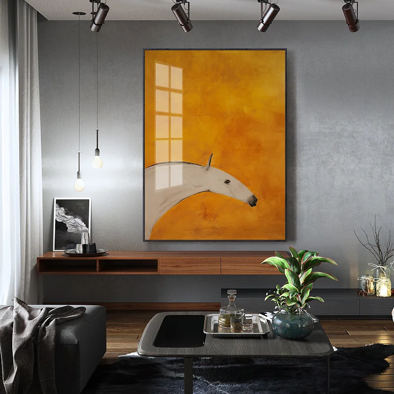 Плакат на холсте с изображением североевропейской современной оранжевой стены крыльца коридора крыльца гостиной