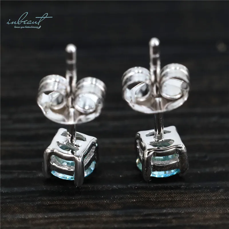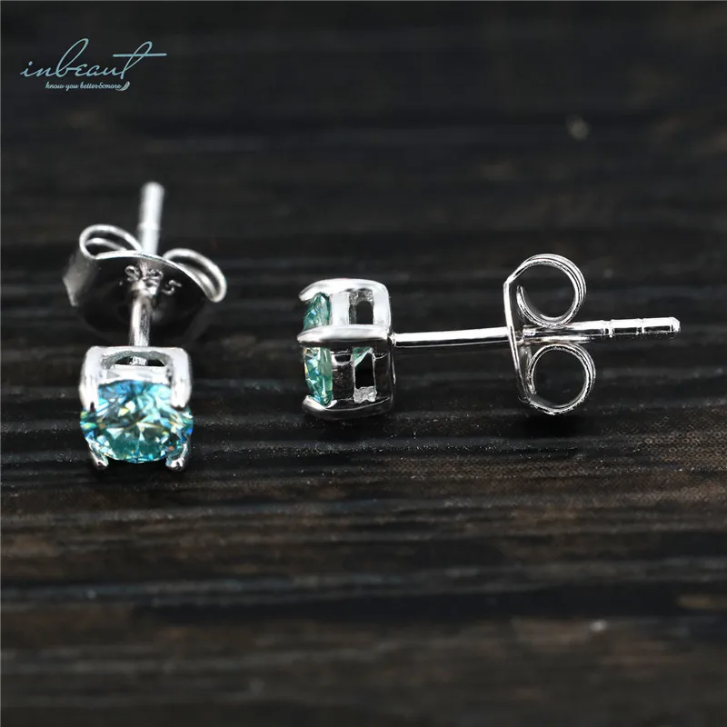 Серьги inbeaut с бриллиантами 925 пробы, отличная огранка 0,3-1 карат, синие серьги-гвоздики с муассанитом, женские вечерние сапфировые серьги, Ювелирное Украшение
