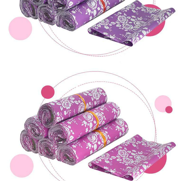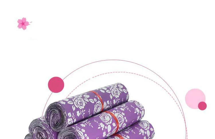 Новинка 50 шт.лот курьерские Сумки с цветочным узором фиолетовая розовая Водонепроницаемая самозапечатывающаяся полиэтиленовая Сумка-конверт розовые цветочные Экспресс-пакеты почтовая сумка