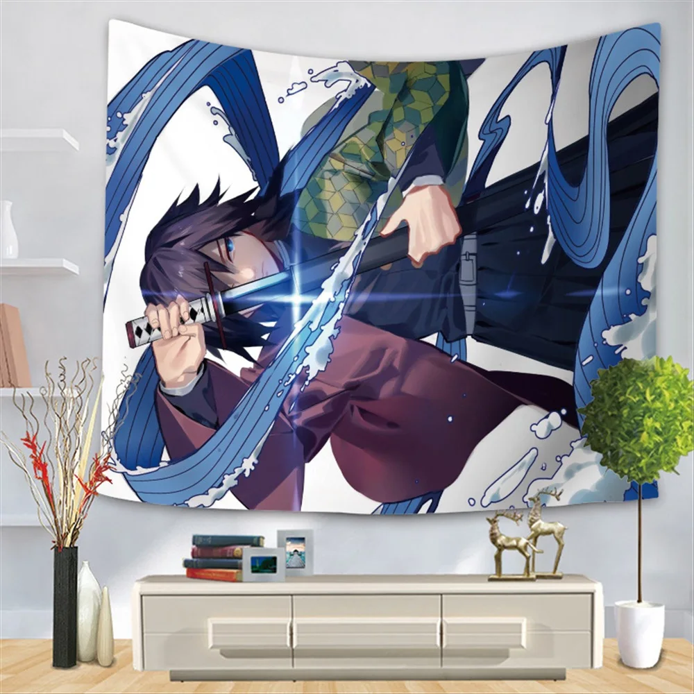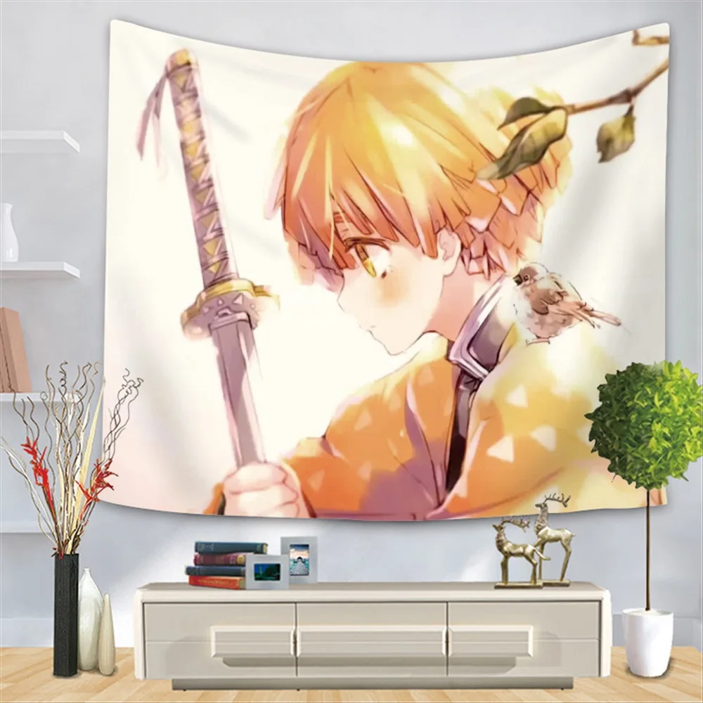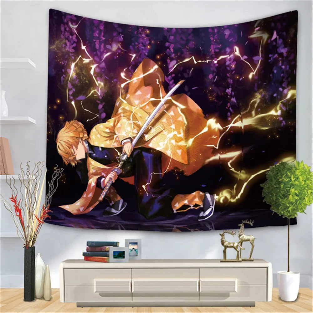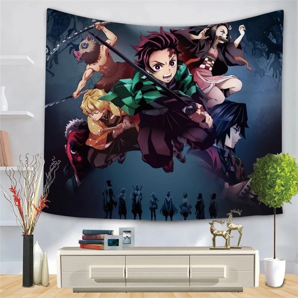 Гобелен с изображением демонов, рассекающий призраков из японского мультфильма, настенный тканевый гобелен большого размера с цифровой печатью для украшения дома