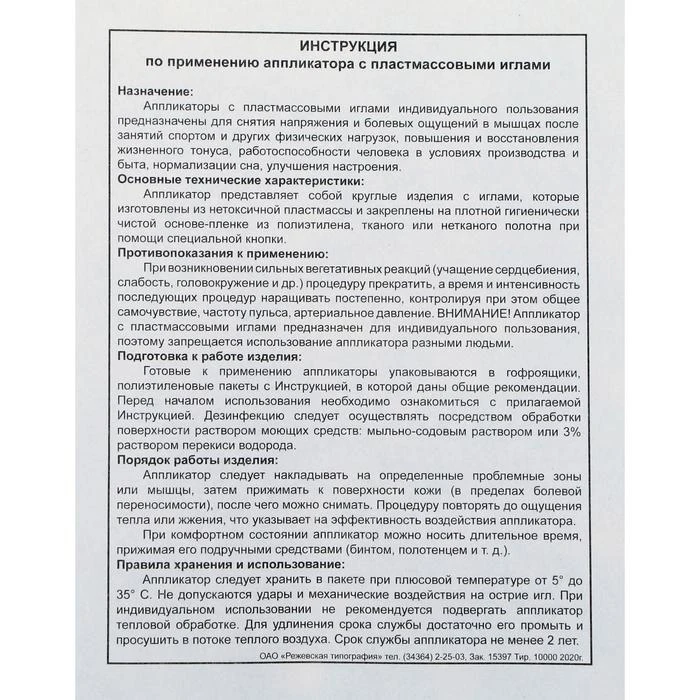 Аппликатор Кузнецова, 144 колючки, спанбонд, голубой, 260 х 560 мм 6626922