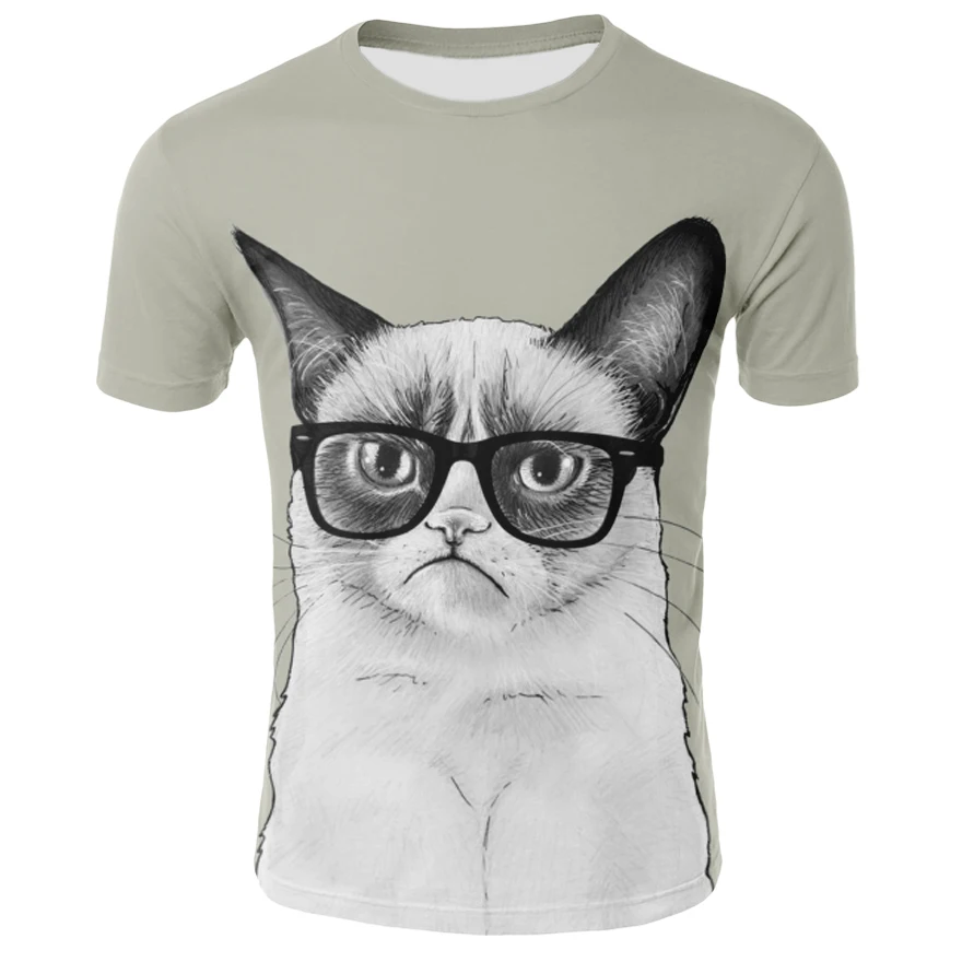 Футболка с 3D-принтом кошки, для мужчин и женщин, летние Забавные т...