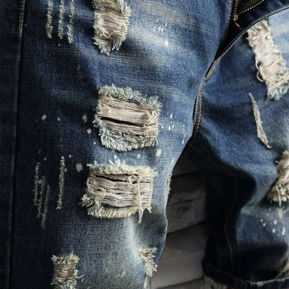 Шорты мужские рваные из джинсовой ткани, короткие джинсовые брюки в ретро стиле, с вырезами, размеры 28-40, лето