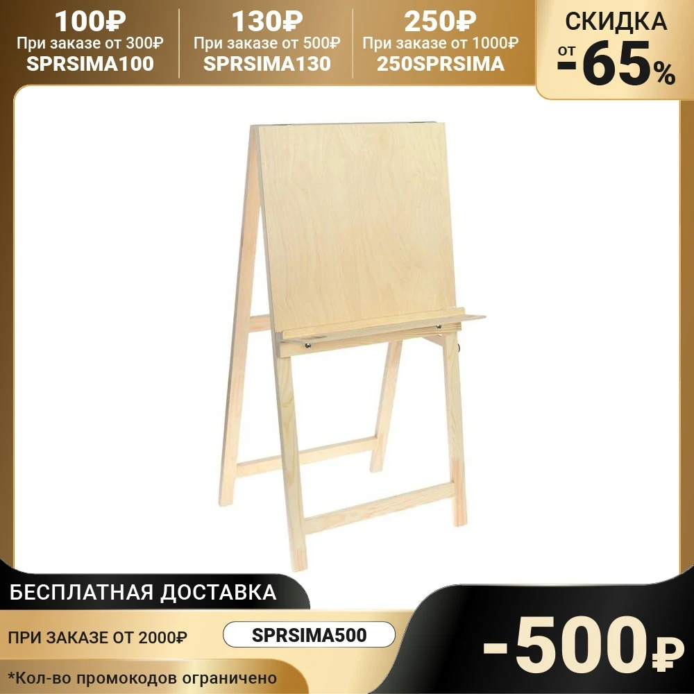 Мольберт тип Хлопушка, 1000 х 500 х 550 мм, планшет 600 х 500 мм, полка с двумя подстаканниками
