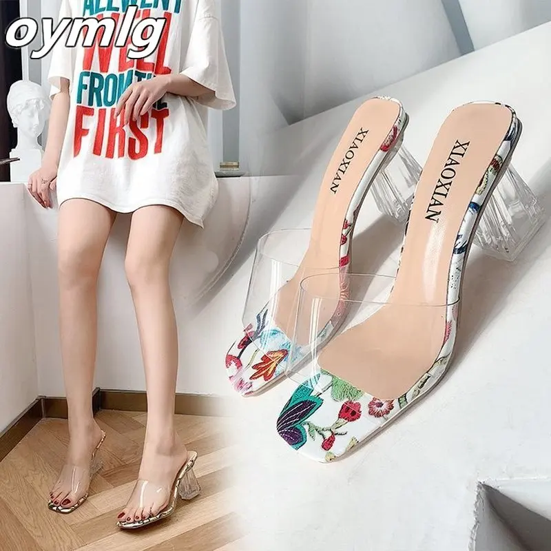 2021 прозрачные женские шлепанцы на высоком каблуке; Новая Летняя обувь; Простые прозрачные сандалии из пвх; Zapatillas Mujer Casa Sapato Feminino
