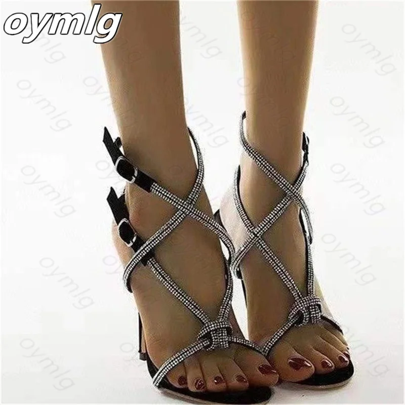Босоножки женские на высоком каблуке, с перекрестной пряжкой, большие размеры, лето 2021