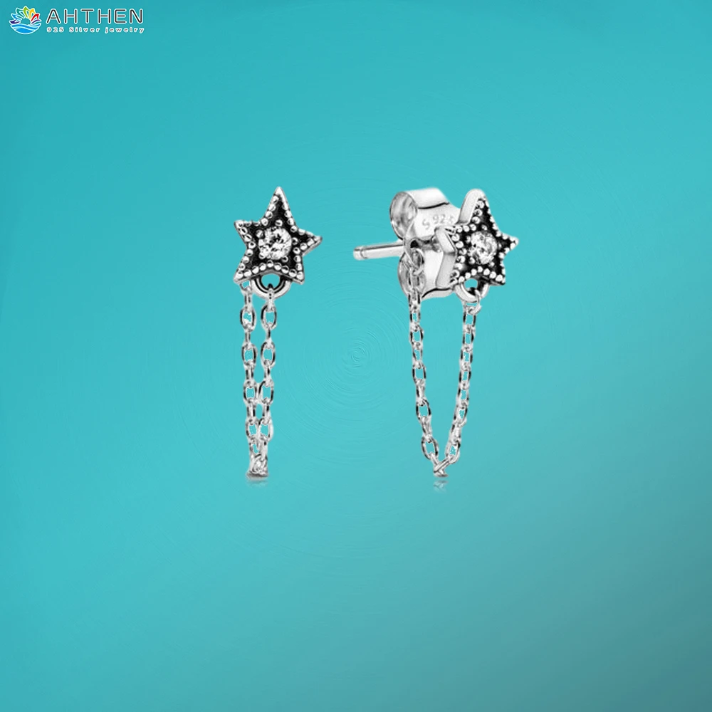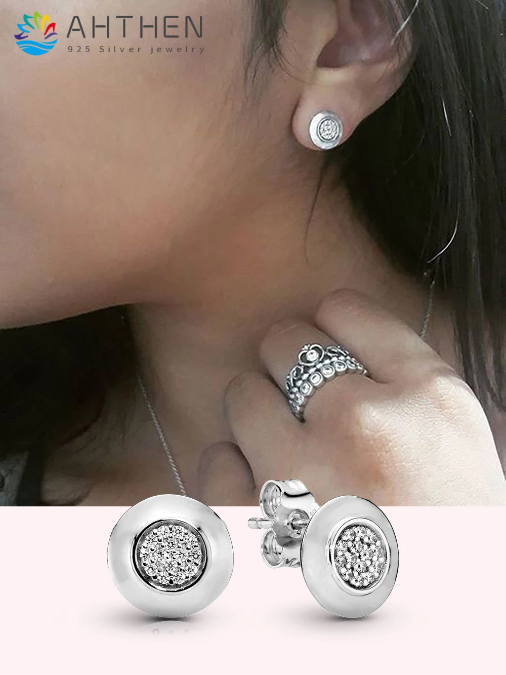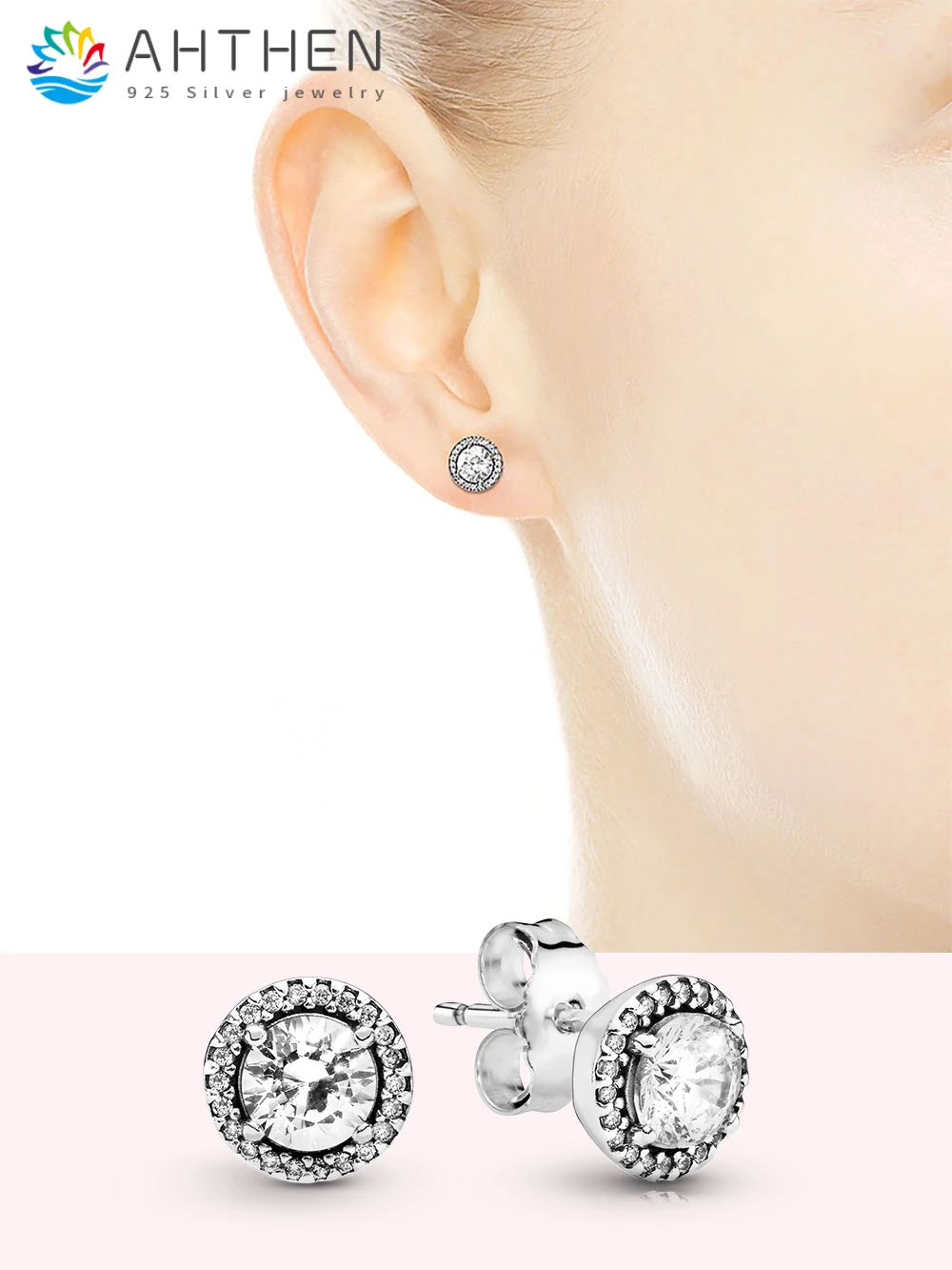 Женские сверкающие серьги-гвоздики, 925 пробы, серебристый веер