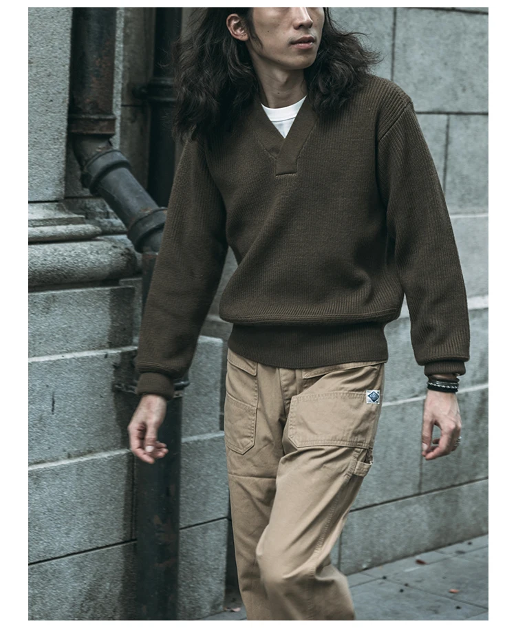Мужской шерстяной трикотажный джемпер с v-образным вырезом Bronson Mechanics Type A-1 USAAF