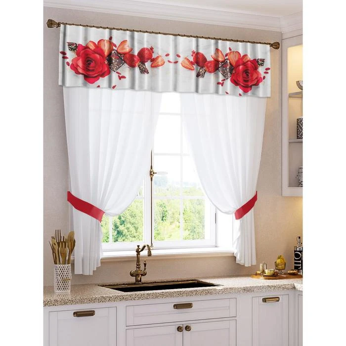 Комплект штор для кухни Бисмарк тюль, 294х160см, ламбрекен, 290х40 см, подхваты, пэ 100% 5129486