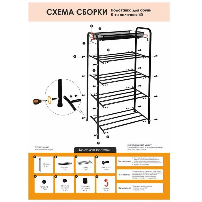 Подставка для обуви, 5 ярусов, 453095 см, цвет чёрный