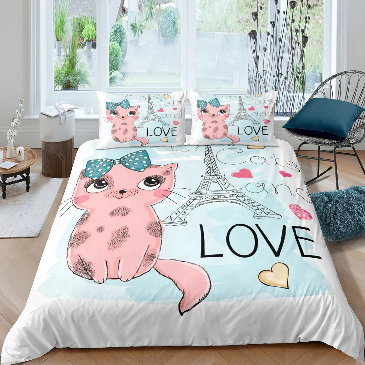 Комплект постельного белья с кошкой, милый котенок, роскошный пододеяльник для спальни принцессы, одеяло, наволочка, мультяшное постельное белье для девочки