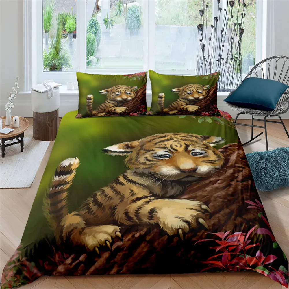 Комплект постельного белья с изображением тигра, пододеяльник, постельное белье, пододеяльник, наволочка, односпальный, Королевский, двуспальный, двуспальный размер, 2021