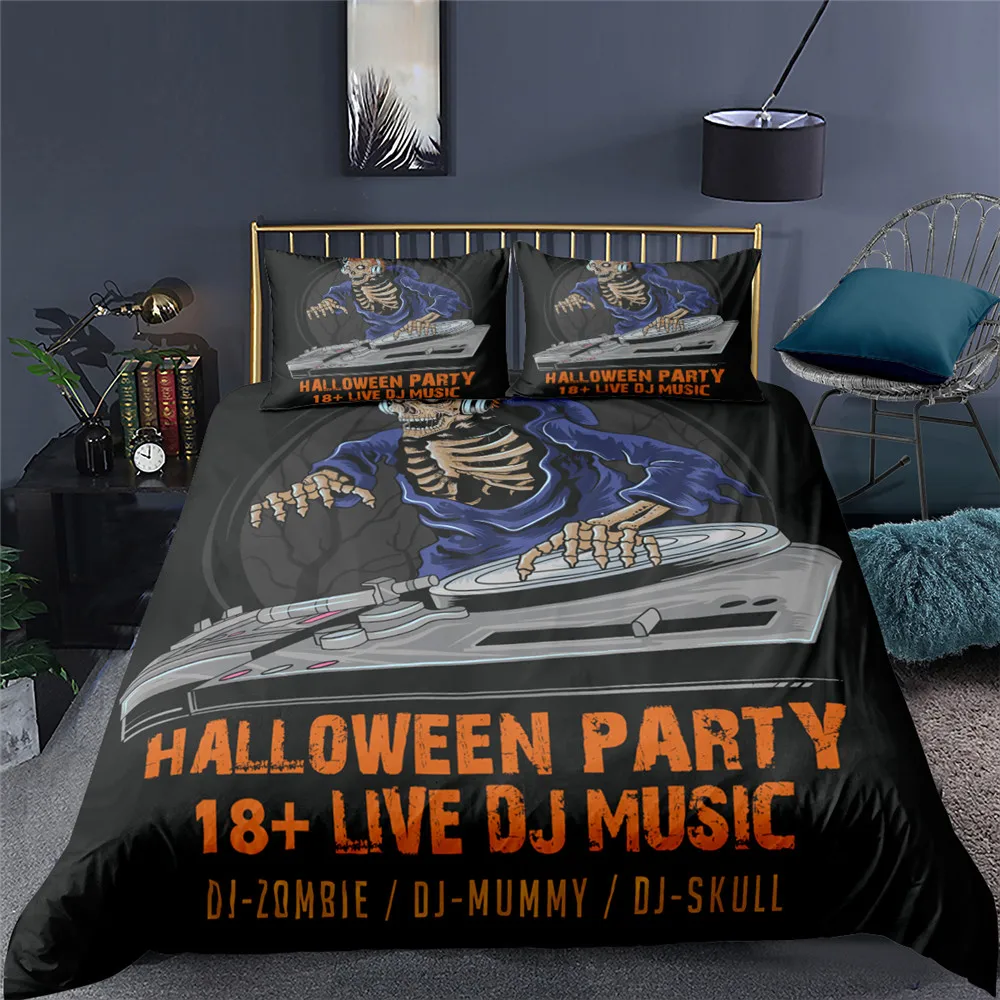 2021 череп играть диджеев Постельное белье 23 шт. Хэллоуин Рождественский подарок King Queen двухместные Размеры вечерние пододеяльник без листа