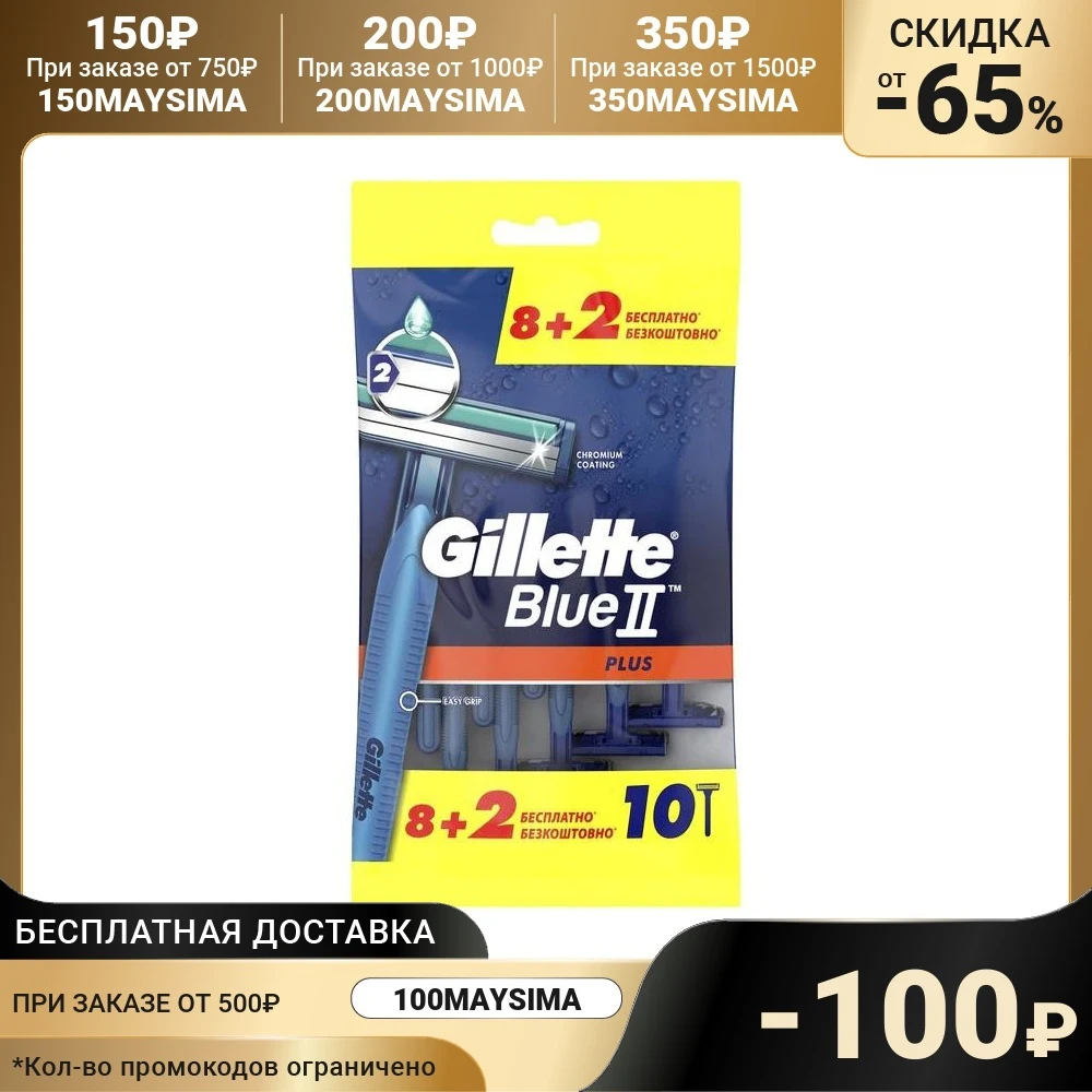 Бритва одноразовая Gillette Blue2 Plus, 8 + 2 шт. 4476952