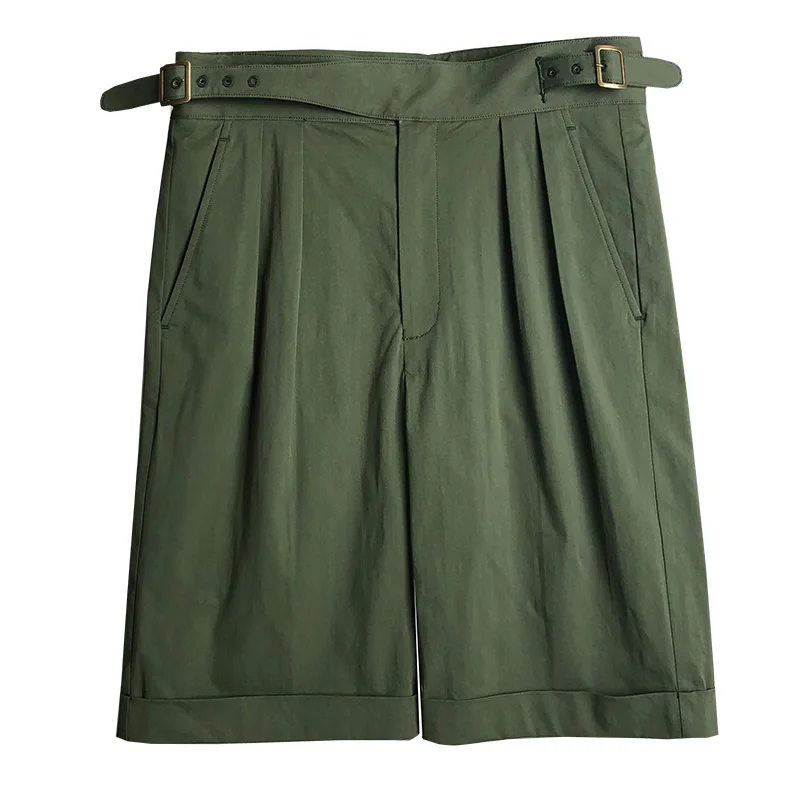 Модель отличается регулируемой талией, свернутым низом, а также двойной плиссировкой Дизайн со средней посадкой и удобным вырезом Современный дизайн с элегантной формой Изготовлено из средней хлопковой ткани, отлично подходит для ношения летом