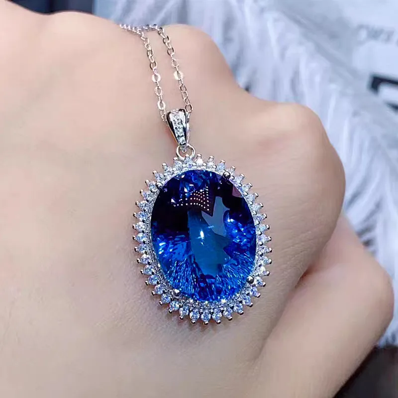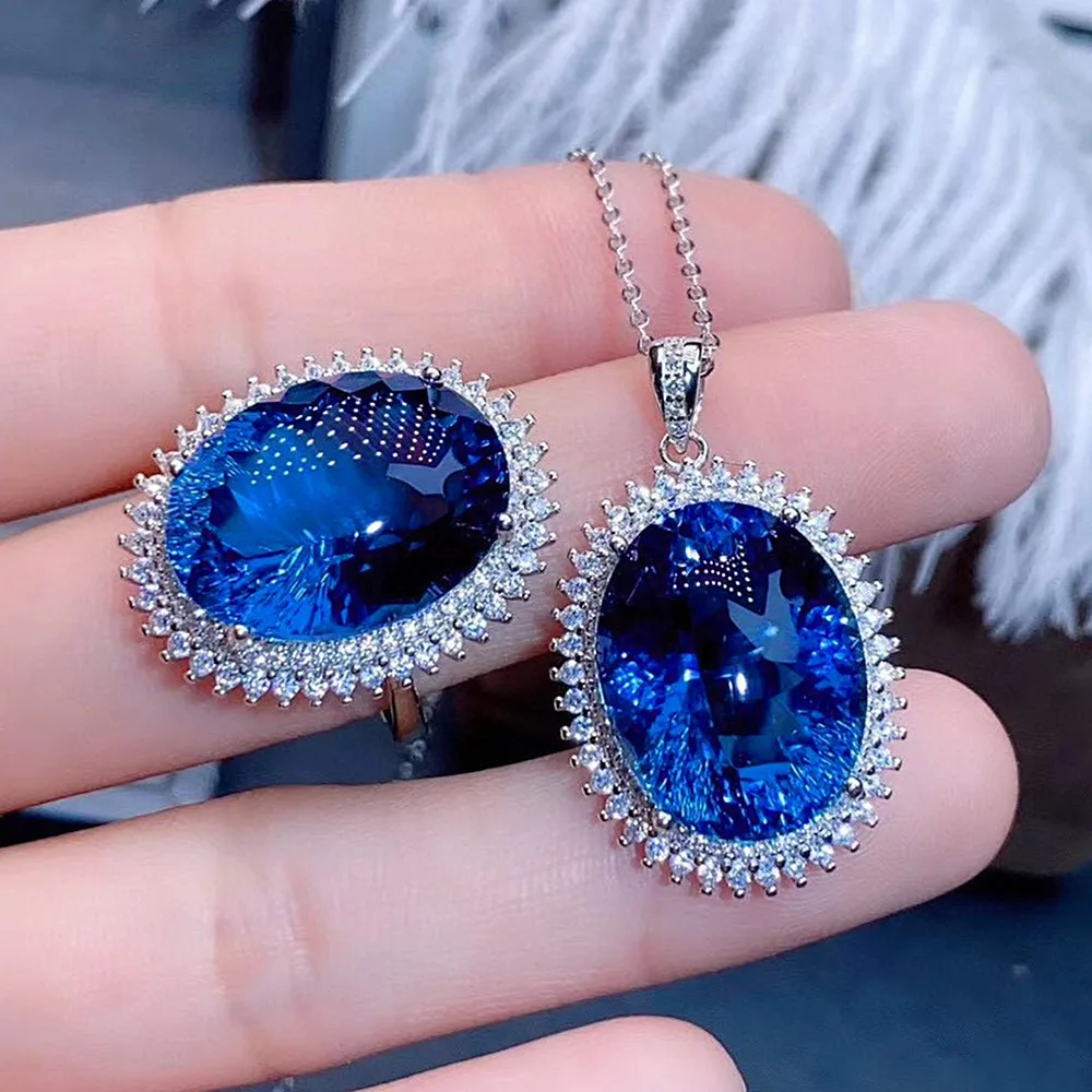 Кольцо женское с крупным овальным камнем, Ювелирное Украшение с синим сапфиром, топазом, драгоценными камнями 7 карат, цвет белое золото и серебро, хороший подарок