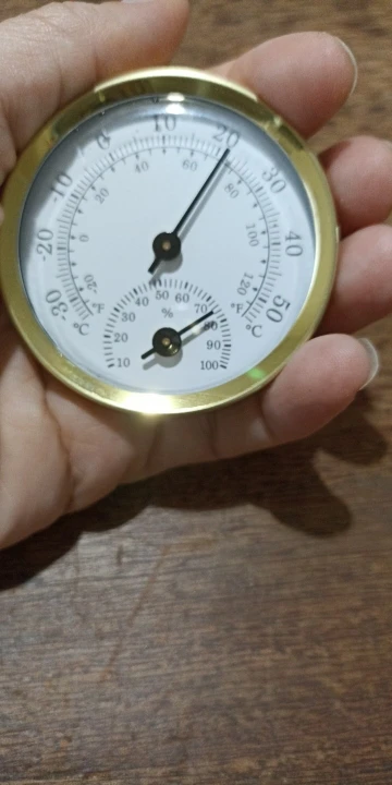 Характеристика:Внешний корпус изготовлен из алюминиевого сплава, компактный размер, прочный и долговечныйМеханический термометр и гигрометр, батарея не требуетсяС точным и четким циферблатом, легко читаетсяКрытый и открытый мини круглый гигрометр из алюминиевого сплава термометрПодходит для домов, офисов, мастерских, школ, торговых центров, складов и т. д.Спецификация:Тип: Мини термометр гигрометрЦвет: Золотой + белыйРазмер: прибл. 58*12,5 мм (Dia.* H)Диапазон измерения температуры: -30 ~ 50 градусов Цельсия (-20 ~ 120 °F)Точность: +/-2 градуса ЦельсияДиапазон измерения влажности: 10 ~ 100% rhТочность: +/-5% rh (40 ~ 70% rh)Примечание:Цвет товара на фотографиях может слегка отличаться на разных мониторах компьютера так как мониторы откалиброваны по-разному.Возможны незначительные отклонения на 1-3 мм вследствие измерений вручную. Спасибо!Посылка включает в себя:1 * термометр гигрометра