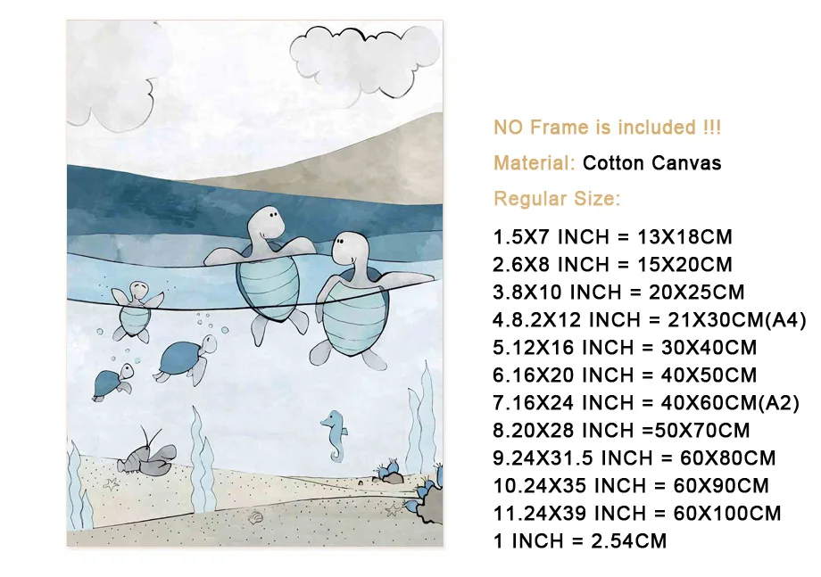 Мультяшные Морские животные кит черепаха Осьминог Картина на холсте...