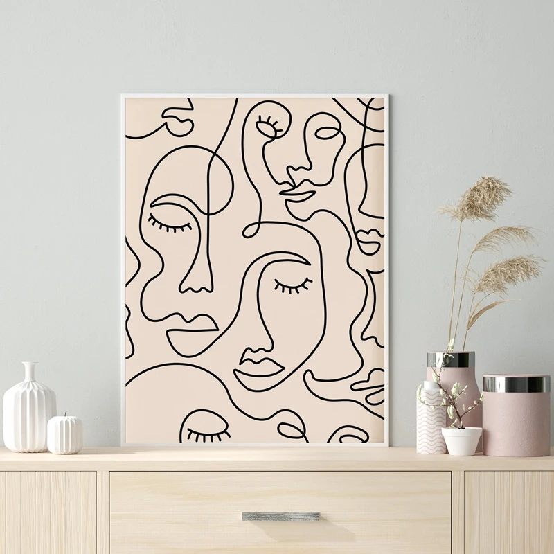 Абстрактная женщина, лицо, одна линия, рисунок, принты, листья, мин...