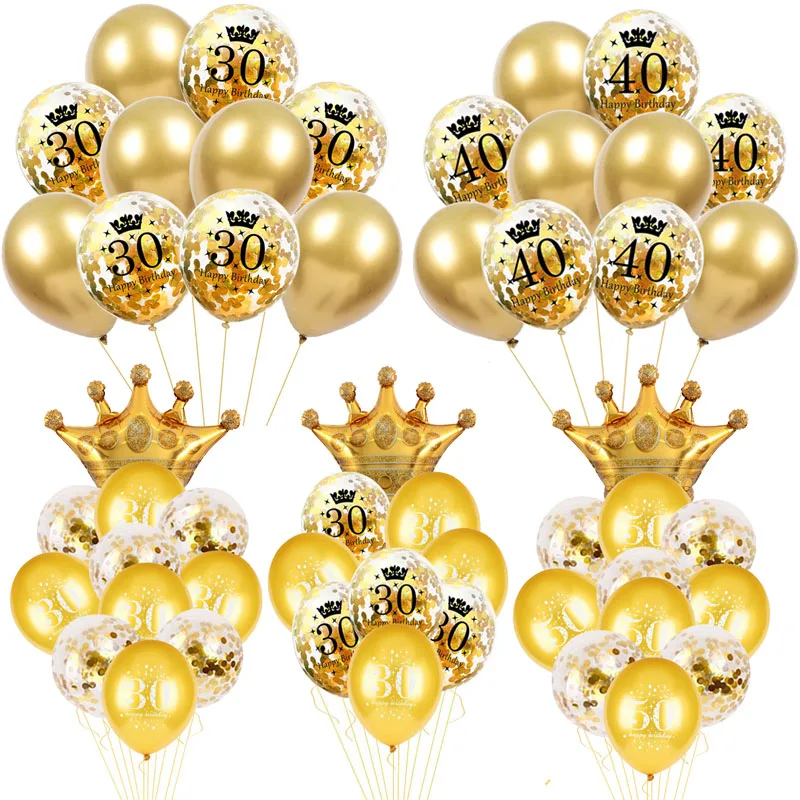 30th 40th 50th 60th Золотая Корона воздушный шар "Конфетти" День рождения украшения для взрослых 30 40 50 60 лет воздушные шары Globos