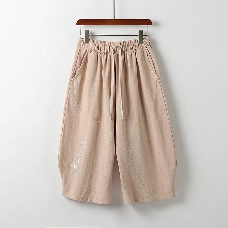 Летние шорты в китайском стиле, мужские льняные винтажные шорты с в...