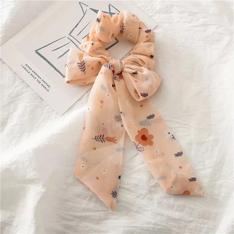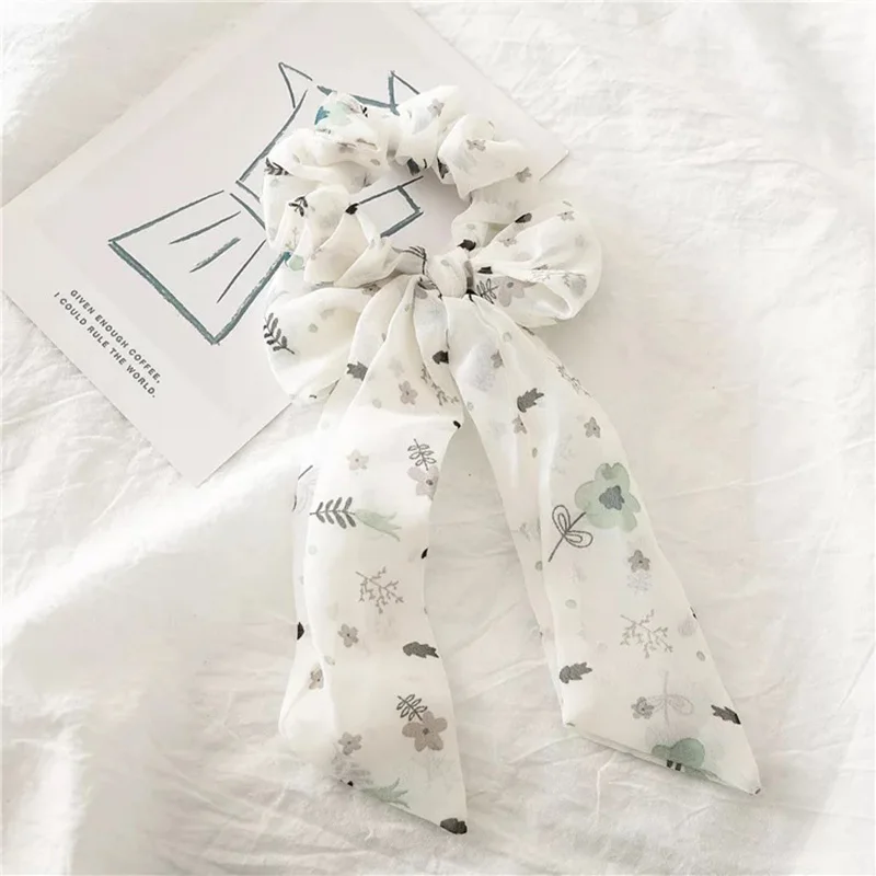 Резинки для волос в горошек с цветочным принтом, шифоновые ленты дл...