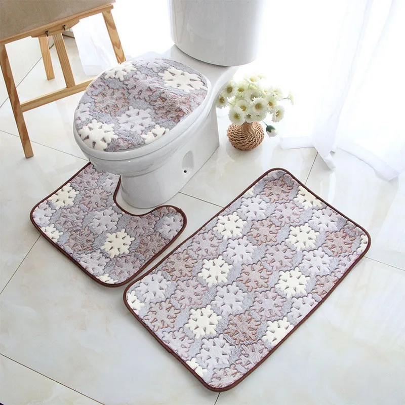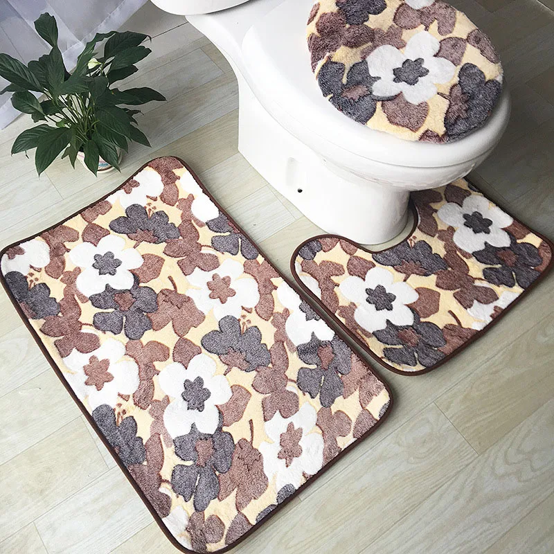 Коврики для ванной, туалета, из трех частей, коралловые, плюшевые, противоскользящие, в современном стиле