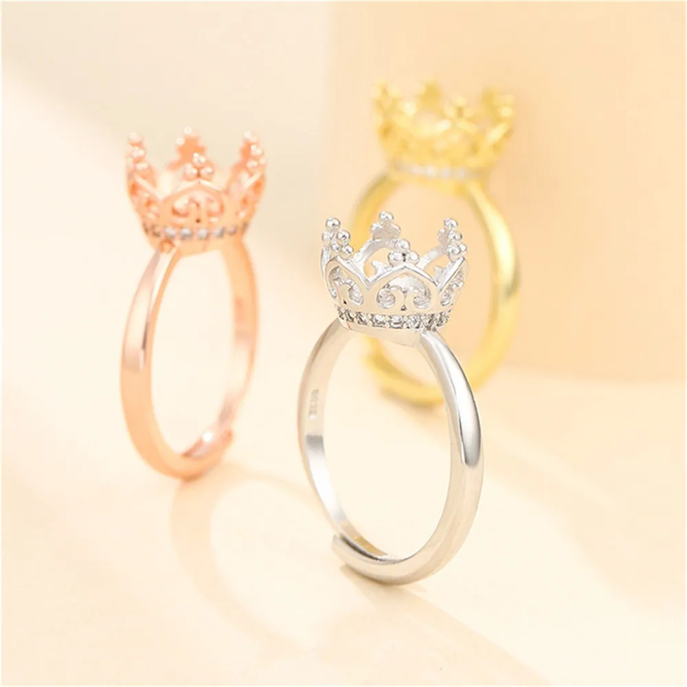 Кольцо пустое для 9-10 мм круглых бусин или жемчужин позолоченное серебро 925 пробы в форме короны регулируемое кольцо базовое кольцо SR0161