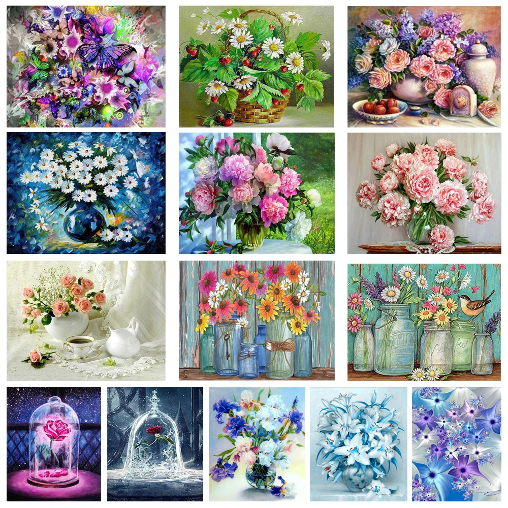 Алмазная вышивка 5D сделай сам, картина из вазы с цветами, Набор дл...