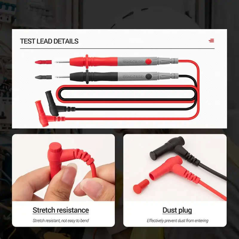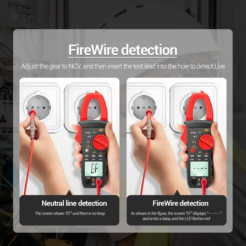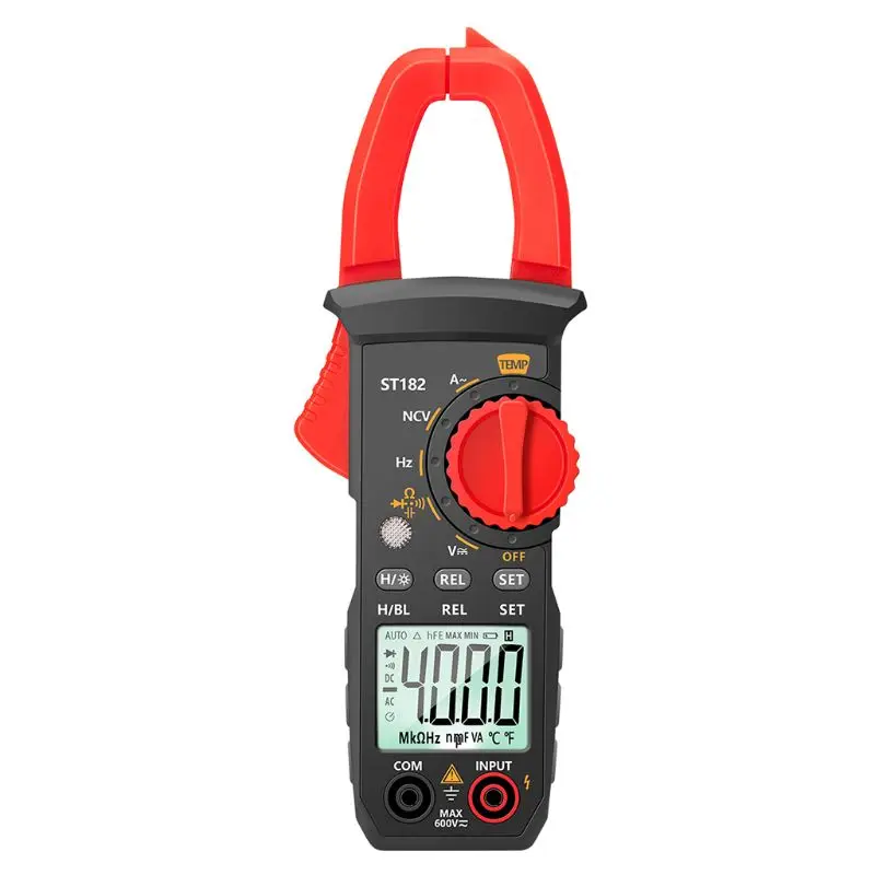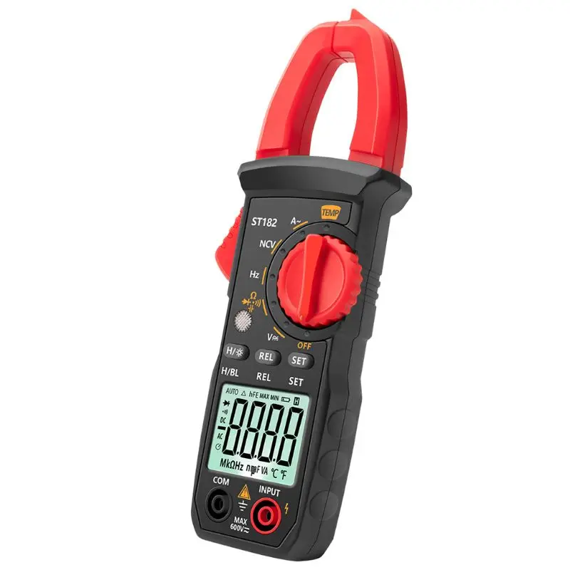 ST182 цифровой клещи переменного тока мультиметр постоянного/переменного напряжения Амперметр Тест er Гц Емкость NCV Ом температурный тестОсобенности:Этот инструмент выполняет AC/DC напряжение, AC Ток, сопротивление, звуковая непрерывность, диод, измерения температуры и бесконтактный ACV обнаружения (NCV), а также емкость, Гц и т. Д. Это Автоматический диапазон DMM с функцией переменного тока хомута.Характеристики:Модель: ST182Напряжение переменного тока: 4 в/40 В/400 В/600 ВНапряжение постоянного тока: 400 мВ/4 в/40 В/400 В/600 ВСопротивление: 400Ω/4k Ω/40k Ω/400k Ω/4M Ω/40MΩТок переменного тока: 40A/400AЧастота: 10 Гц ~ 400 кГц ~ 4 МГцЕмкость: 1nF ~ 4 мкФ ~ 400 мкФ ~ 4mFТемпература: 0 ℃ ~ 400 ℃ ~ 750 ℃ (32 ℉ ~ 752 ℉ ~ 1382 ℃)Посылка:(С розничной коробкой)1 * ST182 зажим мультиметр1 * Черный упаковочный мешок1 * тестовая ручка1 * температурная линия1 * Руководство пользователя