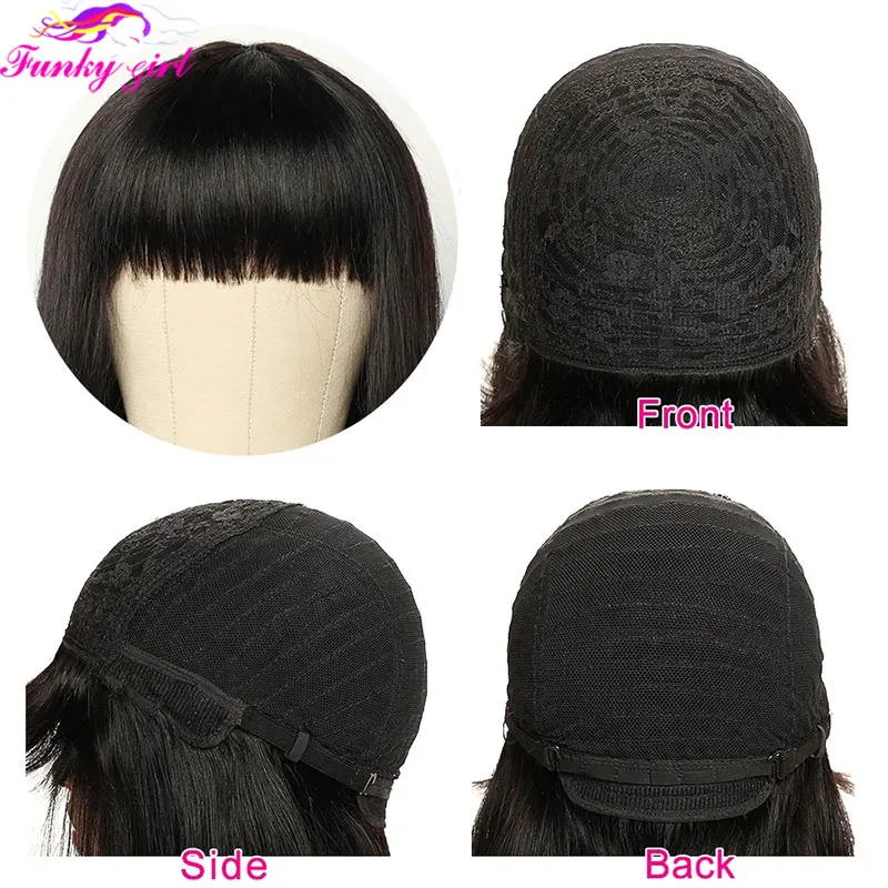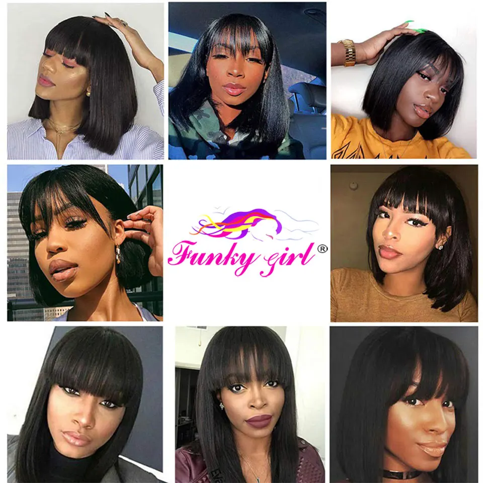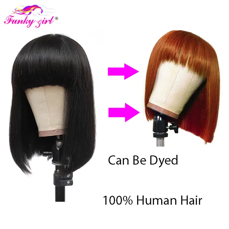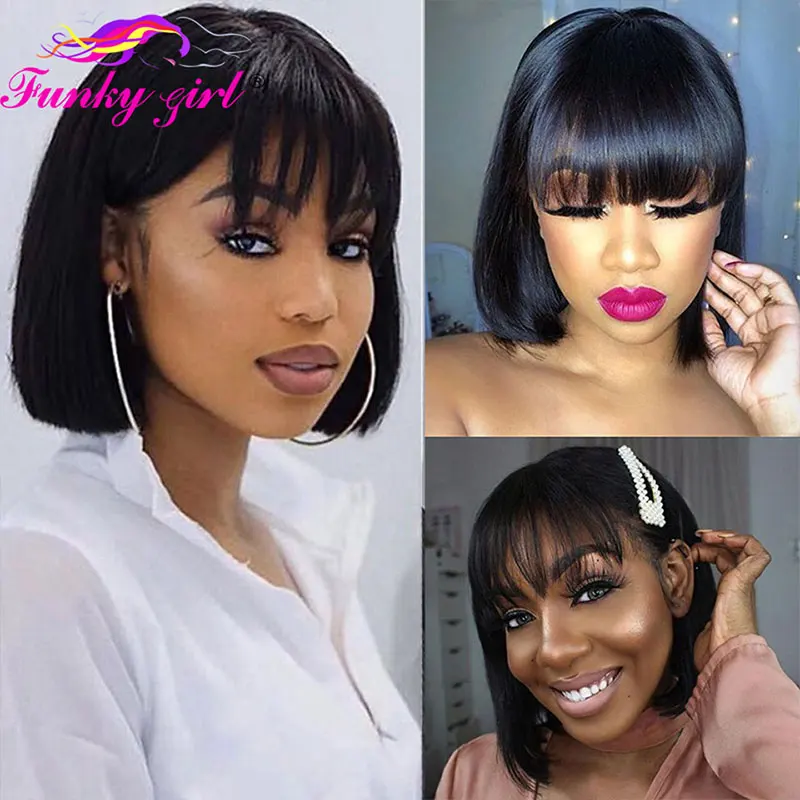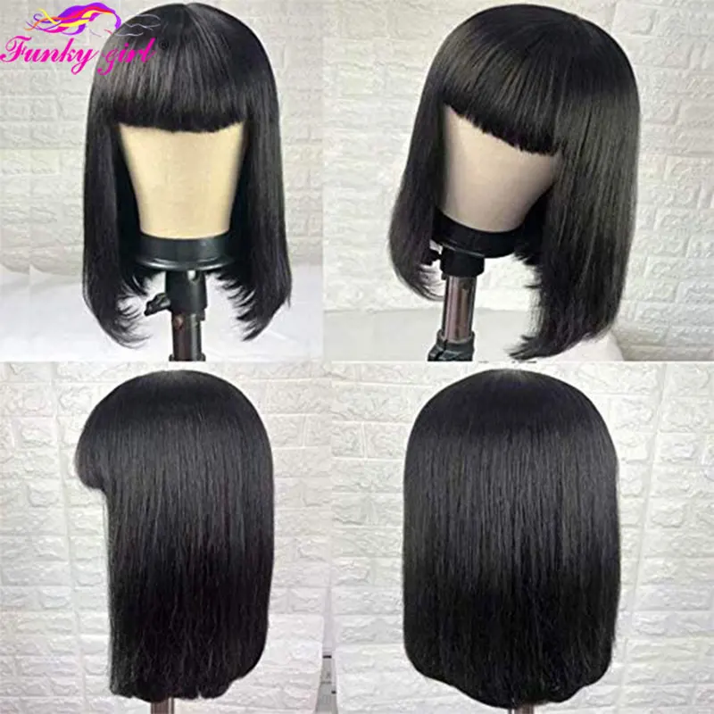 Прямой короткий парик Боб с челкой, бразильские волосы Remy, нет на шнуровке, передний парик, 100% человеческие волосы для женщин, полная машинная работа, дешевые парики