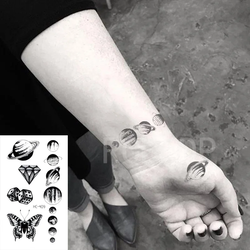 Водостойкая временная татуировка-наклейка с планетой, луной, бабочк...