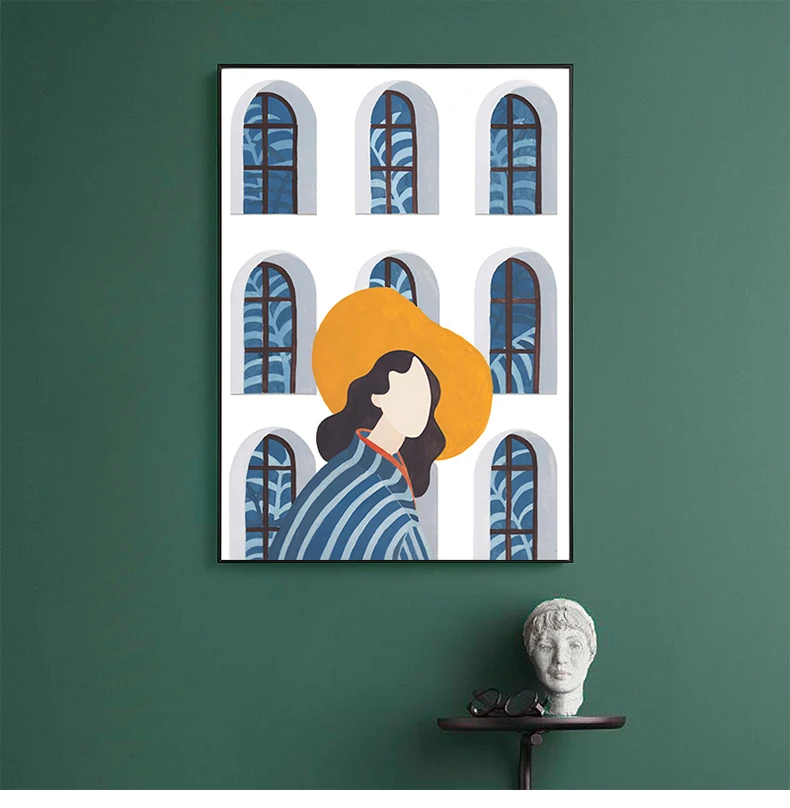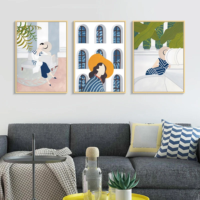 Скандинавская Синяя Женская картина маслом, холст, плакаты и печать...