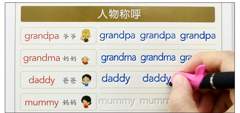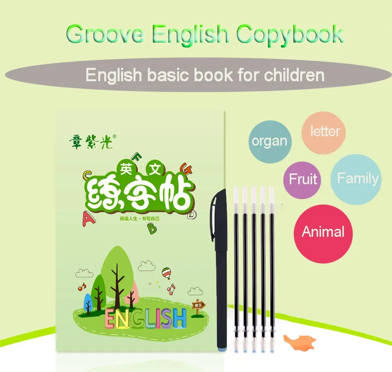 На английском языке и выгодно отличается от обычных однотонных вещей для каллиграфии книги для детей, детские платья, книга для рукописного ввода Детское обучение в письменной форме на английском языке практика Книга