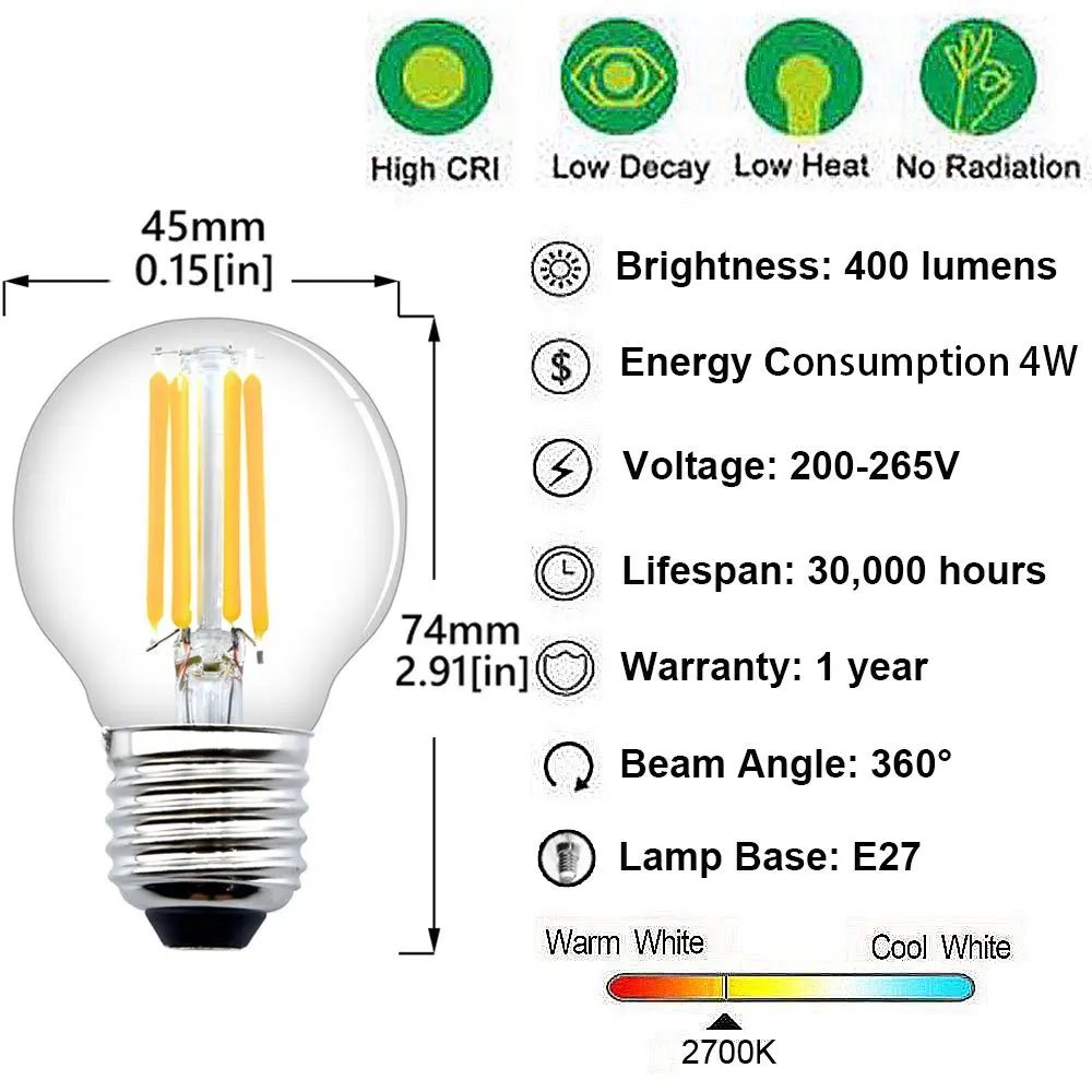 4 светодиодный накаливания = 4 Вт = 40 Вт лампа накаливания = 15 Вт лампа CFL