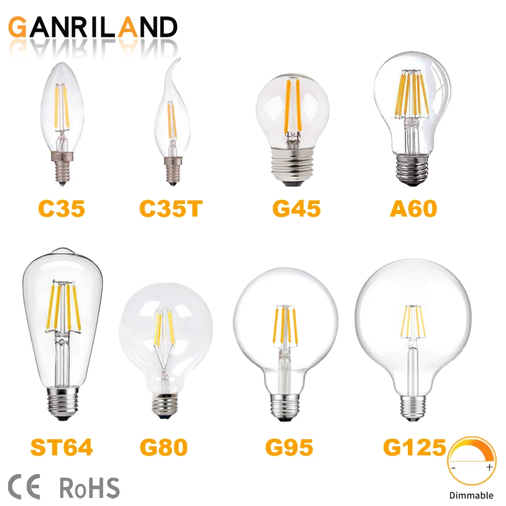 Лампа накалисветодиодный со светодиодной лампой Эдисона, Цоколь E27, 220 В, C35, G45, A60, ST64, G80, G95, G125