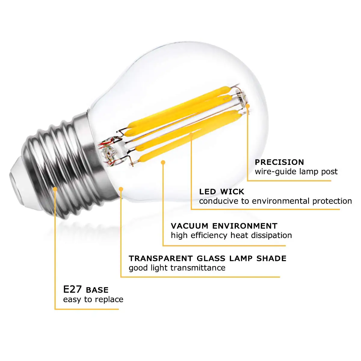 2 светодиодный накаливания = 2 Вт = 20 Вт лампа накаливания = 8 Вт лампа CFL