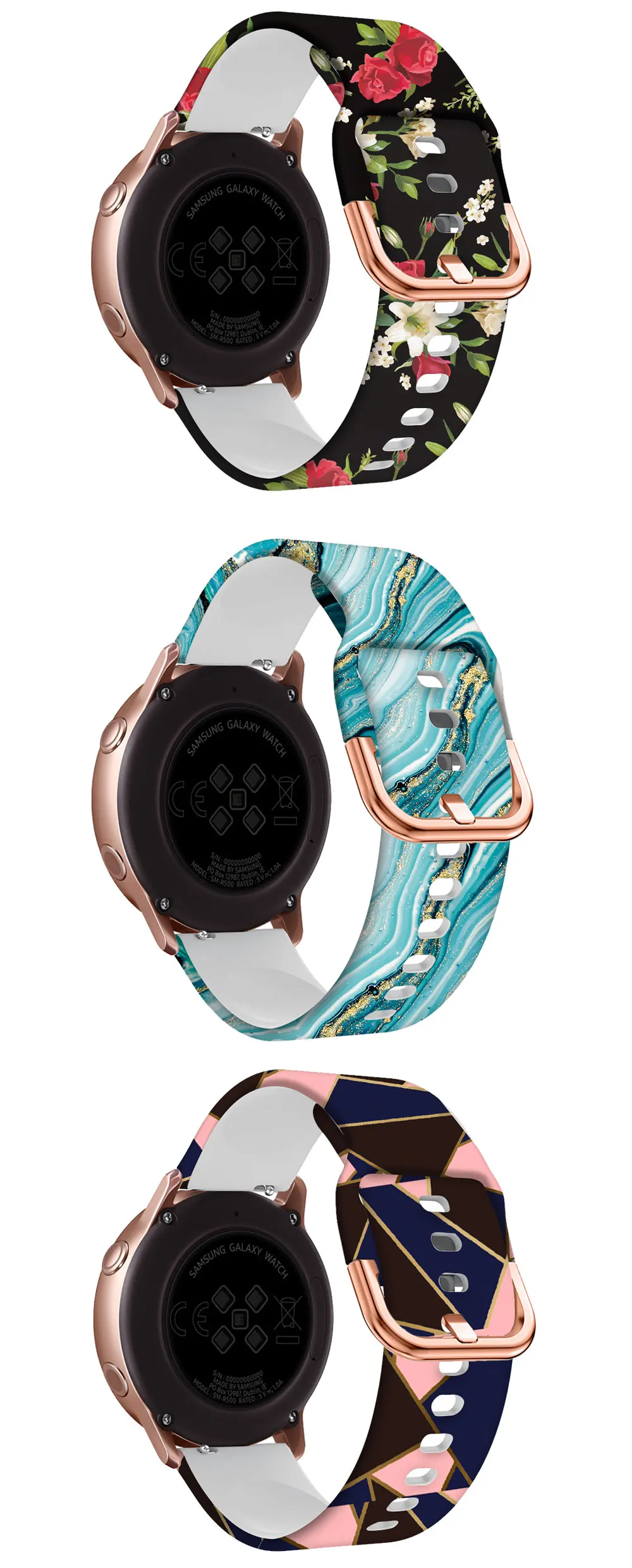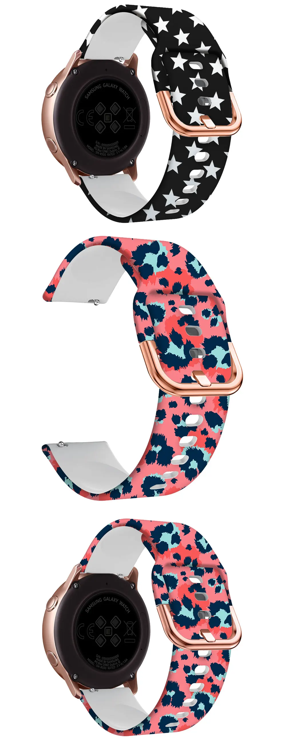20 мм/22 мм силиконовый ремешок для смарт-часов Samsung Galaxy Watch 42 мм 46 Часы 3 41/45 мм шестерни S2 S3 женское печатное ремешок для смарт-браслета Amazfit bip