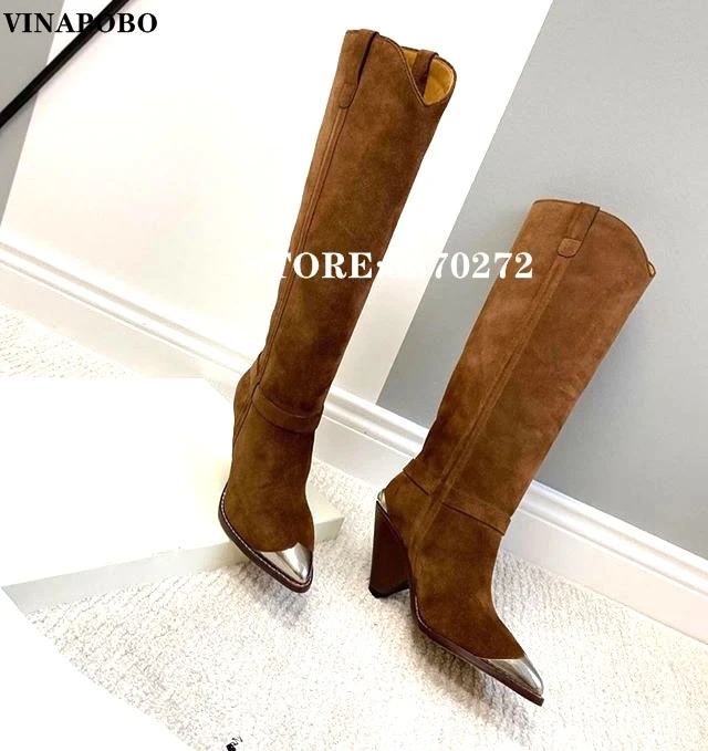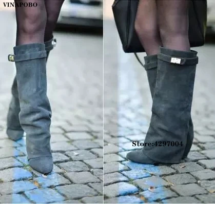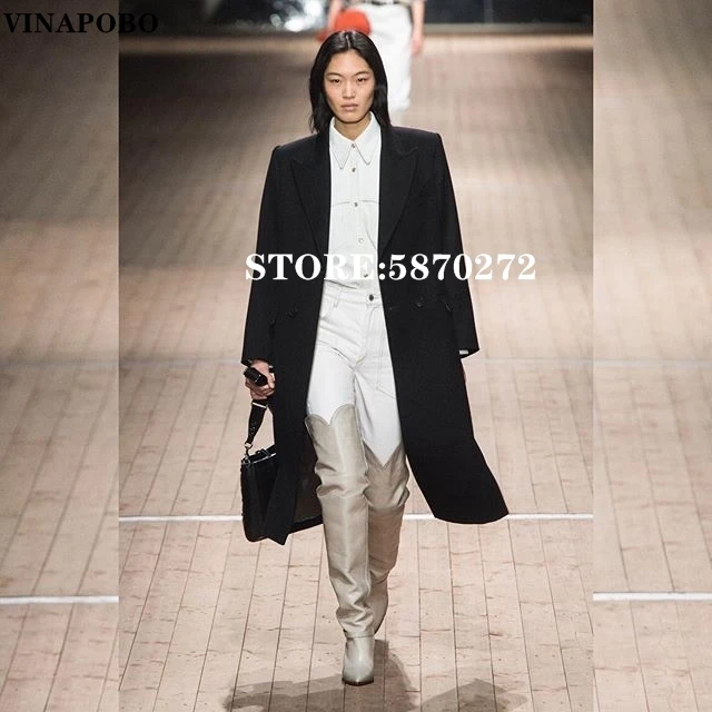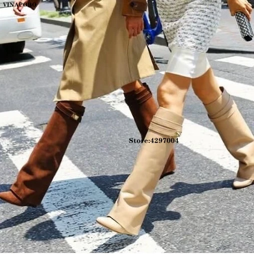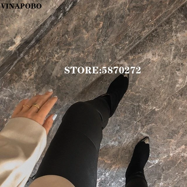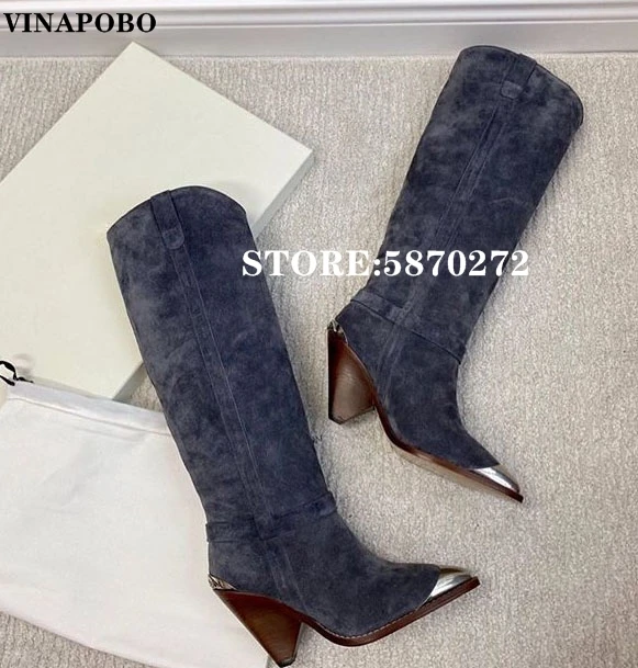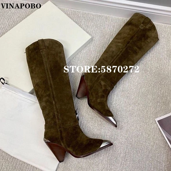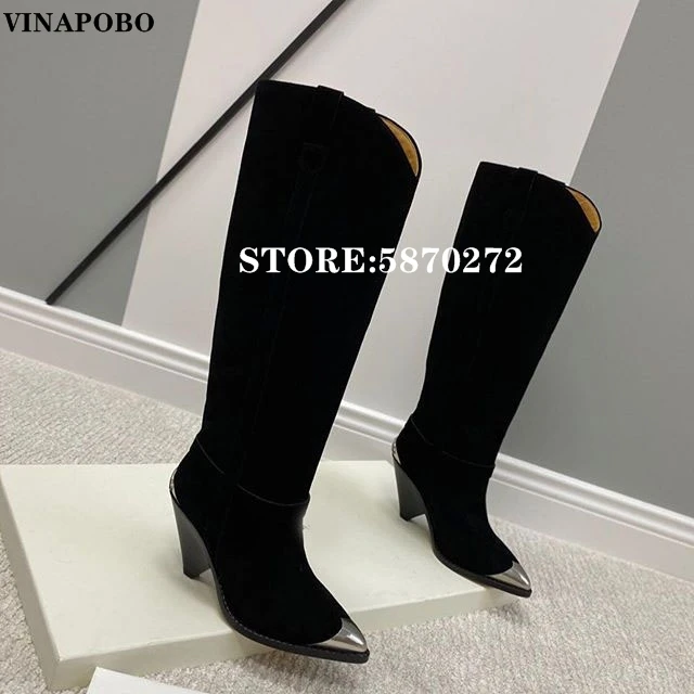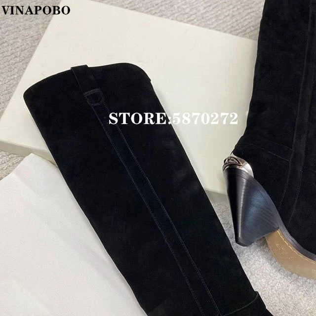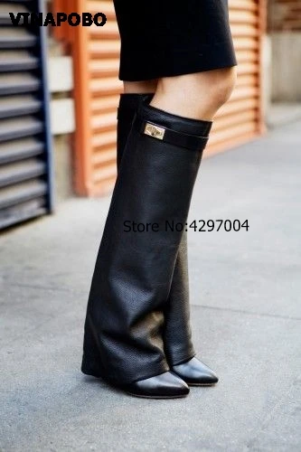 Женские сапоги на танкетке Vinapobo, черные сапоги до колена с острым носком, на танкетке, с закрытым носком, большие размеры